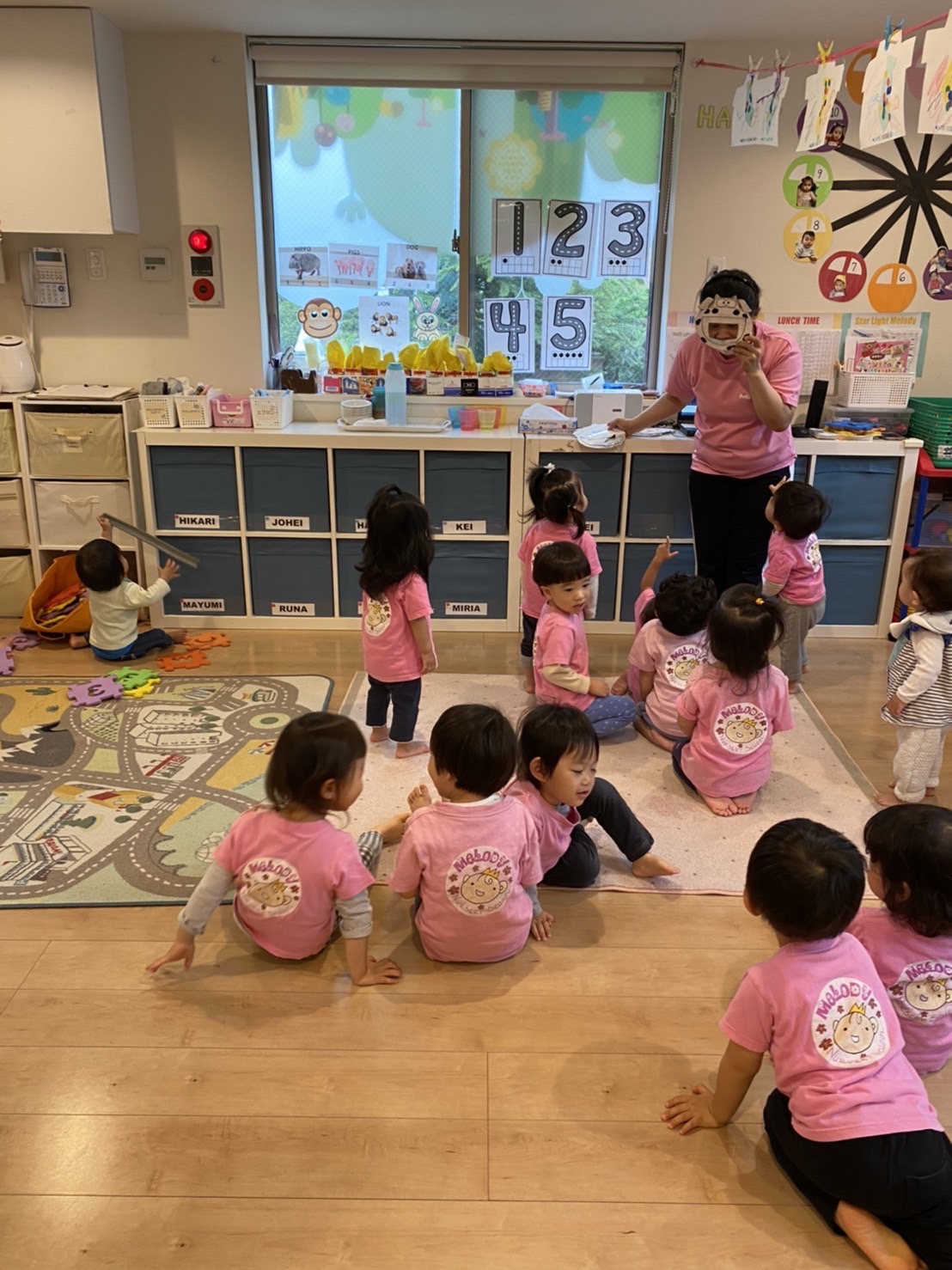 Morning circle time: Koala, Panda, and Rabbit were together at the second floor. They sung and did the gestures of some English songs.